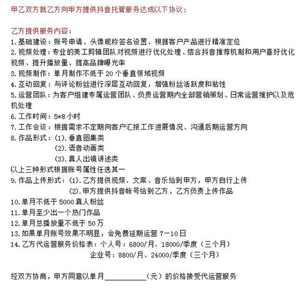 某抖音代運(yùn)營(yíng)商服務(wù)